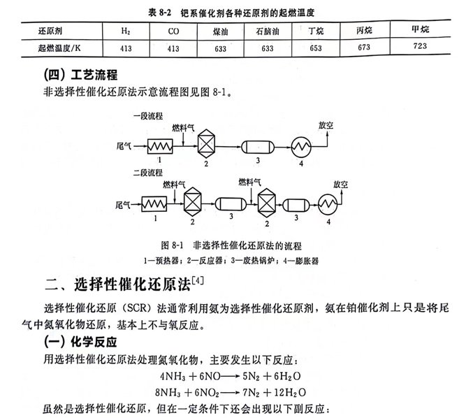 利用不同的還原劑,在一定溫度和催化劑的作用下將NO,還原為無害的氮?dú)夂退ǚQ為催化還原法。凈化過程中,可依還原劑是否與氣體中的氧氣發(fā)生反應(yīng)分為非選擇性催化還原和選擇性催化還原兩類。